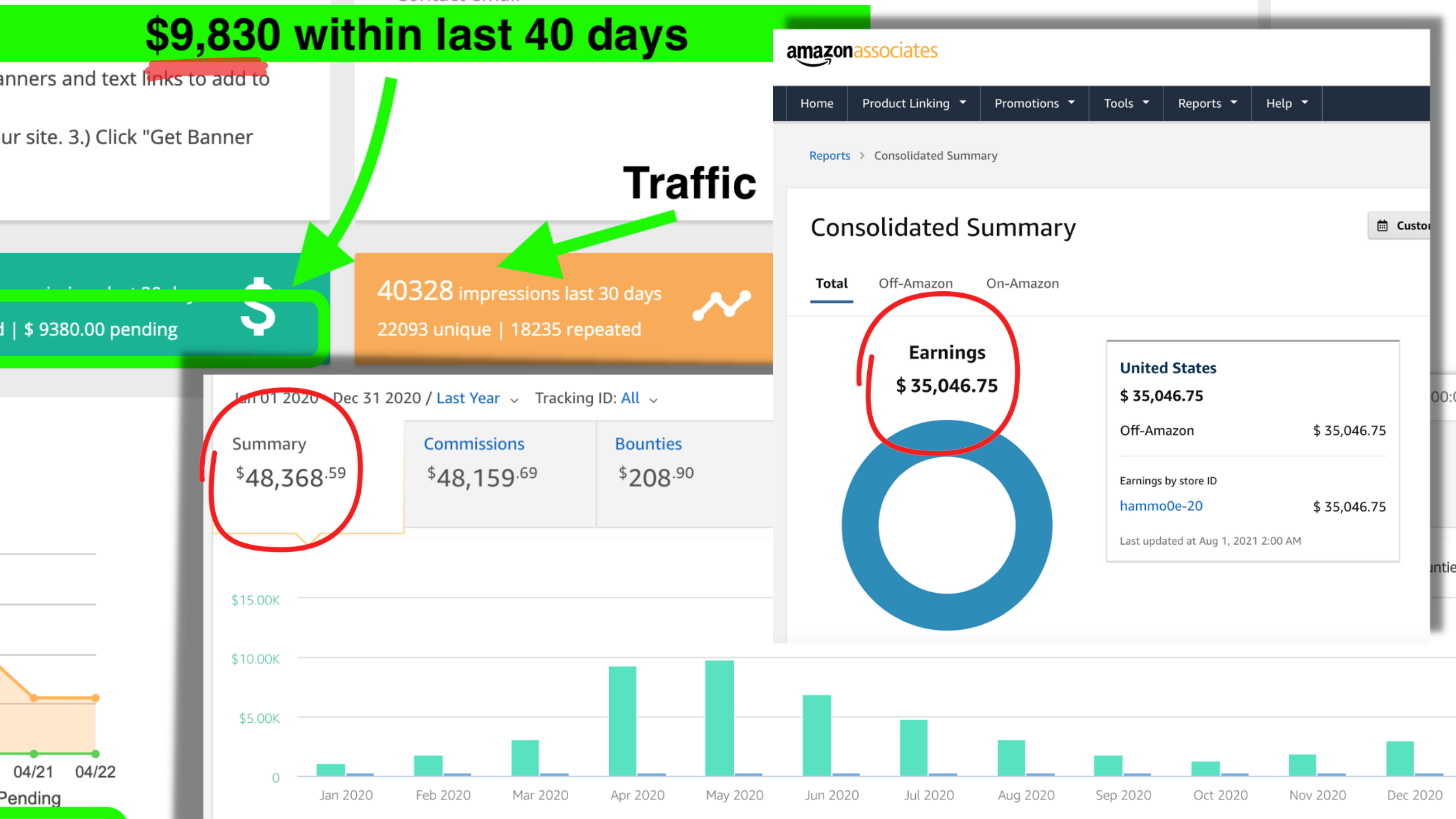 The exact numbers are impossible to draw because there are far too many factors involved in a website’s success. We want you to know that it’s a long term investment. By the end of First year, site will be making $600 to $1500 per month.