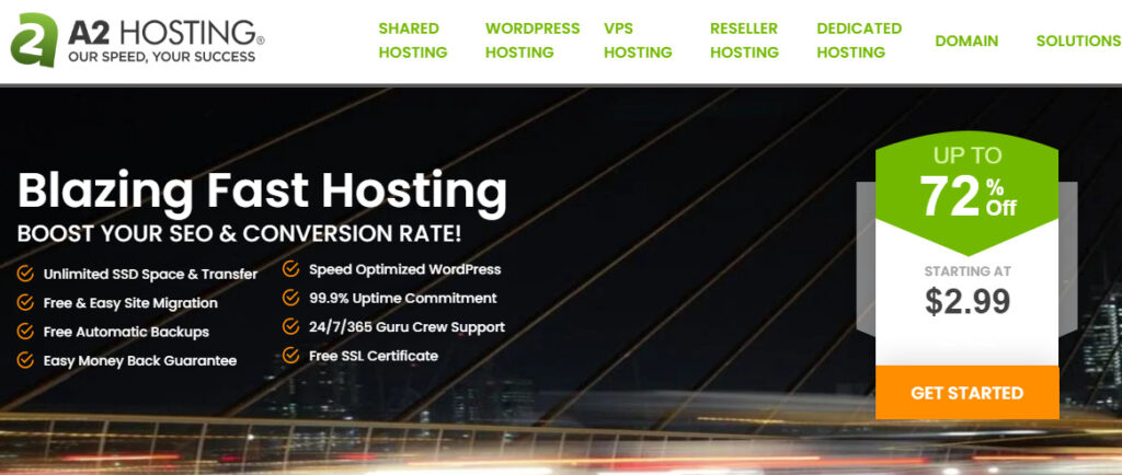 - A2 Hosting is the only choice for lightning-fast Hosting speeds.